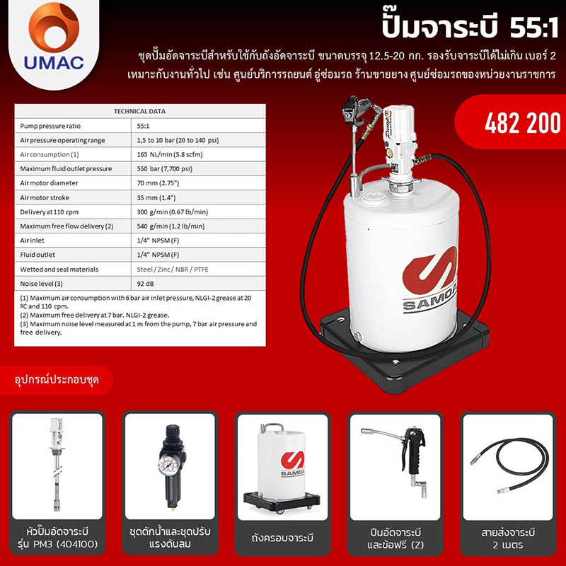 ชุดปั๊มอัดจารบี SAMOA รุ่น 482200 RATIO 55:1 MASTER 3